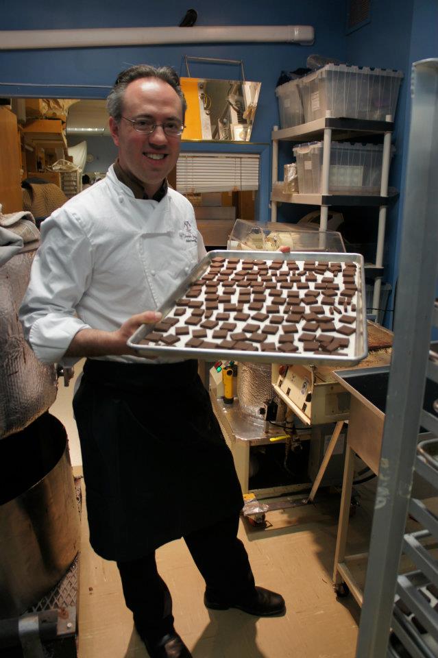 Joshua Needleman of Chocolate Springs in Lenox pulls out a tray of sweets.
