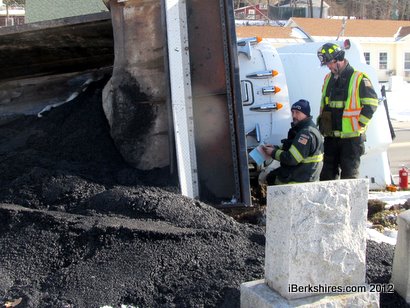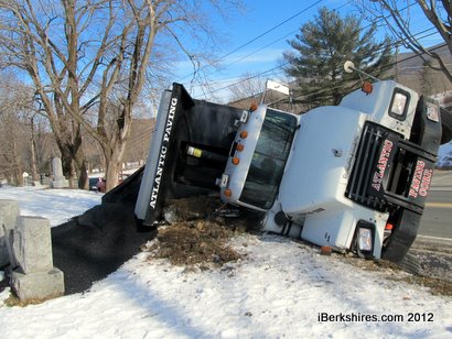 The driver took a left at the bottom of West Shaft and the truck, which was filled with cold patch, rolled onto its passenger side on the cemetery's slight incline along Church Street, stopping just a couple feet from a tree. Asphalt spilled onto the ground but no gravestones appeared to damaged.