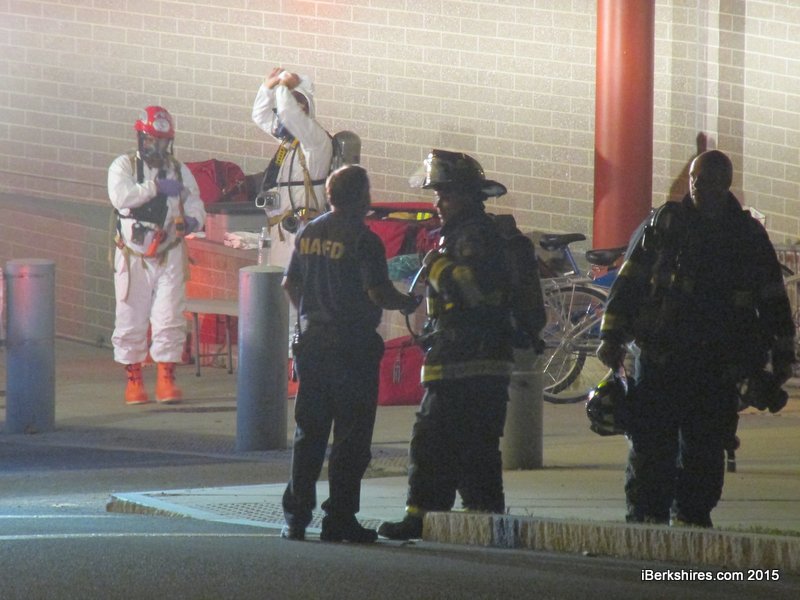 Twenty-seven students who were on or near the fifth floor, or who complained of similar symptoms, were taken to Berkshire Medical Center in Pittsfield and to its North Adams campus. They were required to shed their clothing and to be transported in Tyvek suits as part of the hospital's decontamination procedure. Meranti said that was "standard procedure."