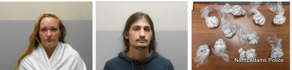 NORTH ADAMS, Mass. — North Adams Police have arrested two people after a motor vehicle stop early Thursday morning uncovered nearly 1,000 bags of heroin.