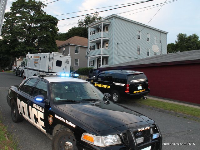 It appeared most of the focus was on the third floor. The Berkshire County Sheriff's Department set up its command vehicle in front of the house and multiple cruisers were moved around the area.