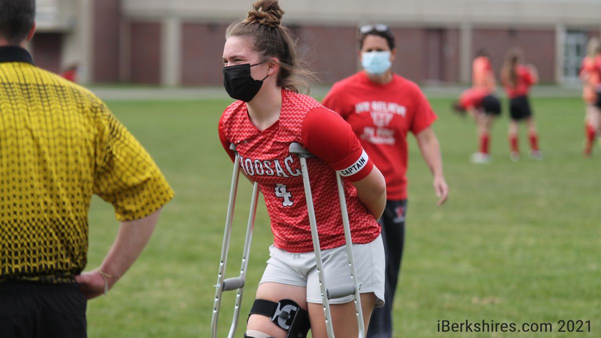 Wearing her captain’s armband, the Hoosac Valley senior arrived at the field two hours after undergoing knee surgery. Two hours later, she was celebrating a 1-0 victory over Mount Everett with her teammates.