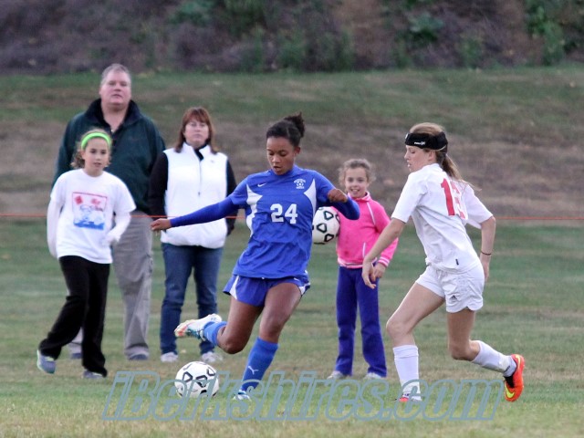 Wahconah opened the scoring in the first half off a goal from Kat Lewis. Perin Genaway sent a ball above the 18 that a Mountie defender was unable to clear. Lewis took control of the ball and sent one on net to put her team ahead, 1-0.