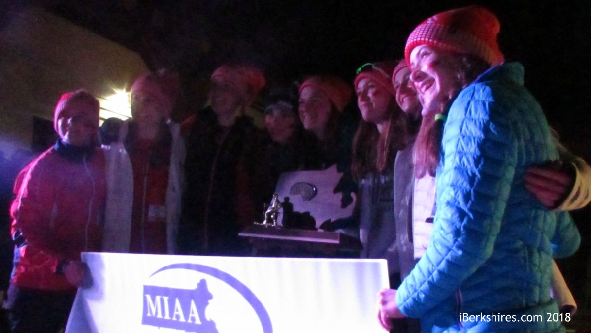 Mount Greylock 24 points; 2. Lenox, 74; 3. Wellesley, 80; 4. Concord-Carlisle, 87; 5. Newton North, 128; 6. Winchester, 138; 7. Mohawk Trail, 157; 8. Wahconah, 159; 9. Acton-Boxboro, 181; 10. Westford Academy, 187; 11. Lincoln-Sudbury, 190; 12. Hoosac Valley 198; 13. Amherst, 247; 14. Wayland, 273; 16. Dover-Sherborn, 343; 17. Taconic, 412.