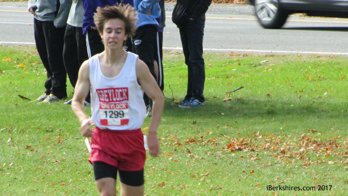 1. Jesse Seid, Mount Greylock, 16:18; 2. Jacob Paris, Taconic, 16:25; 3. Amin Purry, Pittsfield, 16:33; 4. Sam Culver, MG, 16:58; 5. Paul Wales, PHS, 16:59; 6. Ted Yee, Lenox, 17:00; 7. Josh Cheung, MG, 17:10; 8. Jacob Fink, MG, 17:33; 9. Ryan Silverstein, Lenox, 17:34; 10. Peter LaRochelle, MM, 17:35; 11. P.J. Pharmer, Wahconah, 17:44; 12. Mike LaFreniere, Taconic, 17:48; 13. Adam Shepardson, PHS, 17:51; 14. Cole Duval, Mount Everett, 17:53; 15. Steve Taglieri, PHS, 17:54; 16. Grayson Duval, Mount Everett, 17:59; 17. Steve Cicchetti, Taconic, 18:05; 18. Chris Adams, Taconic, 18:13; 19. Brandon Pelkey, Taconic, 18:14; 20. Maxime Leger, Lenox, 18:14.