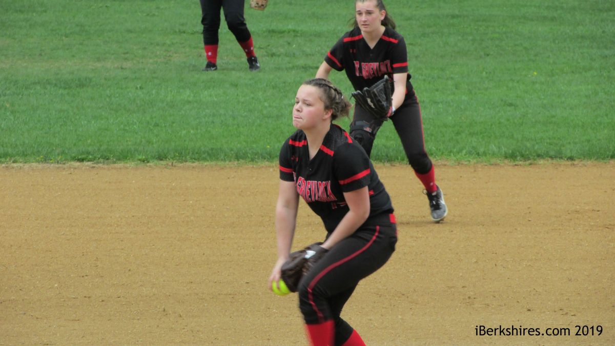 “It’s tough,” Mount Greylock coach June Blake said of the conditions for pitchers. “The wet ball is tough to grip. It’s tough to throw certain pitches in that weather. But I thought she did a great job of staying on top of batters, keeping them off balance. And what they did put in play, we were able to make good plays.”