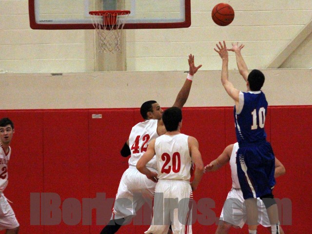 After Drury’s fast start in the first quarter, the game seemed to be getting away from Hoosac early in the second period. Girard started the frame with his second triple of the night before reserves Ryan Harrington and Kirby Bryce scored on back-to-back possessions to put the Devils up 23-8. Robinson switched up to a zone defense, however, and big 3-pointers by Matt Koperniak and Nate Tomkiewicz helped the hosts go on a 12-2 run to end the half.