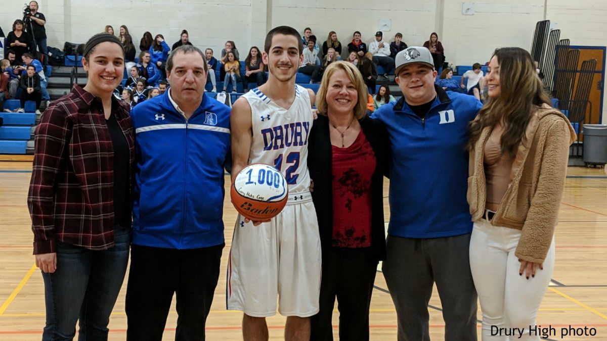 Racette Recognized for 1,000th Point, Drury Boys Win