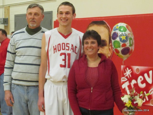 Although Hoosac has a makeup game against Pittsfield on Wednesday night, Monday was Senior Night for the 'Canes, who honored the contributions of Ryan-Kut, Braman, Alibozek and Ian Hill, who got a rare start and assisted Coughlan on the game's first basket.