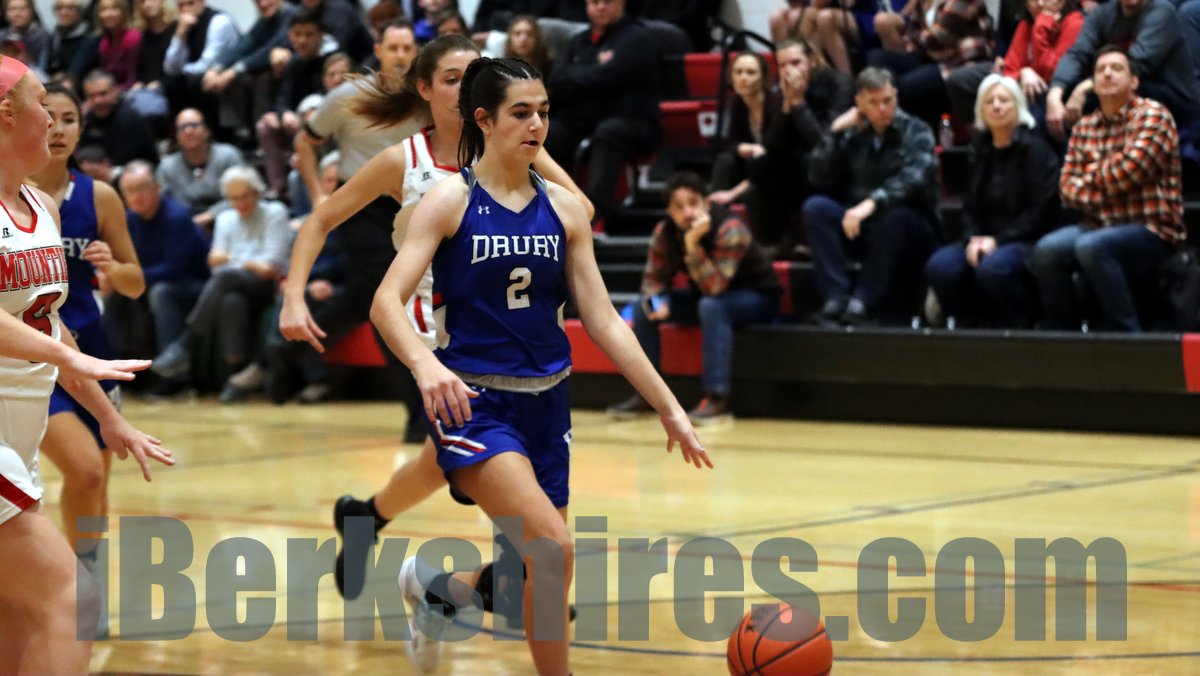 Drury continued to work the 2-3 zone of Ludlow with good, quick passing to open up shots all over the court. The efficient first half also allowed for some of the younger players to get some good minutes and really get involved in the offense. Ninth-grader Megan McGrath was one of those players who ended up knocking down three 3-pointers in the fourth quarter. After such a long road game streak Drury settled in at home well and will hope to continue that home court love on Monday when it hosts Mount Everett.