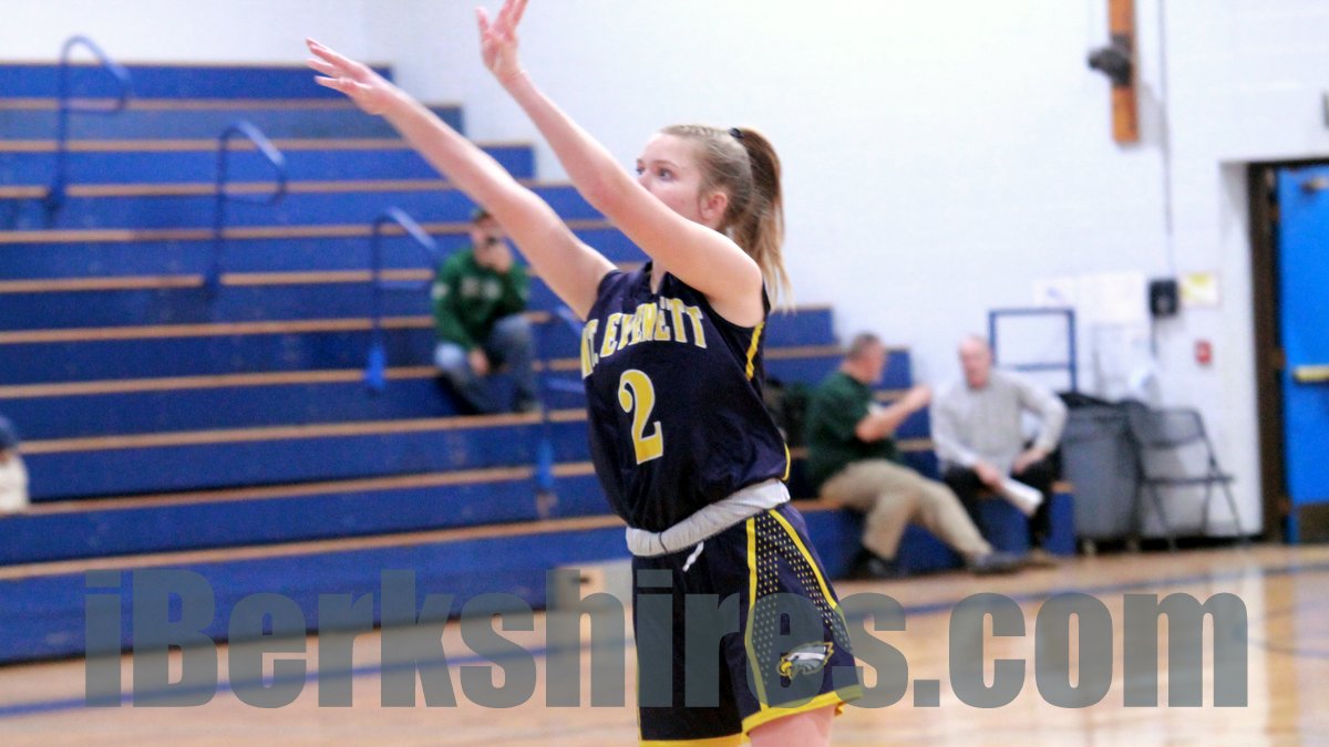 TURNERS FALLS, Mass. – Emma Goewey scored 23 points and grabbed nine rebounds Monday to lead the Mount Everett girls basketball team to a 46-38, come-from-behind win over Franklin Tech.