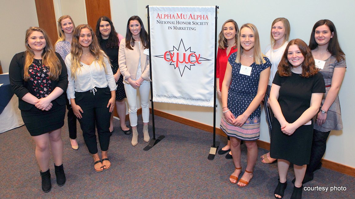 Eastern Connecticut State University's Business Administration Department held its annual Alpha Mu Alpha National Marketing Honor Society induction on April 23 in the Johnson Room of the J. Eugene Smith Library. Alpha Mu Alpha was established in 1981 by the American Marketing Association to acknowledge outstanding scholastic achievement in the field.
