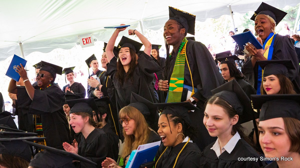 Graduates at Bard College at Simon's Rock cheer at commencement.