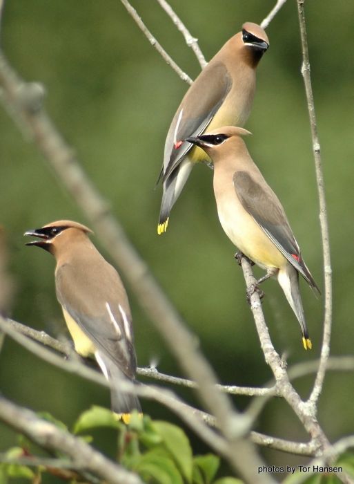Cedar waxwings flock together frequently to fortify flock unity and awaken mate selection in time.