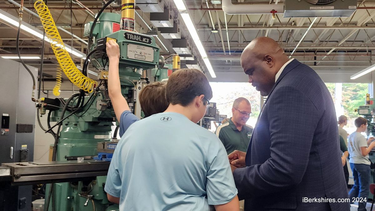 Secretary of Education Patrick Tutwiler was in the Berkshires to celebrate STEM Week. He toured McCann after a morning event at the Basketball Hall of Fame and stopped at Clarksburg School before heading east.