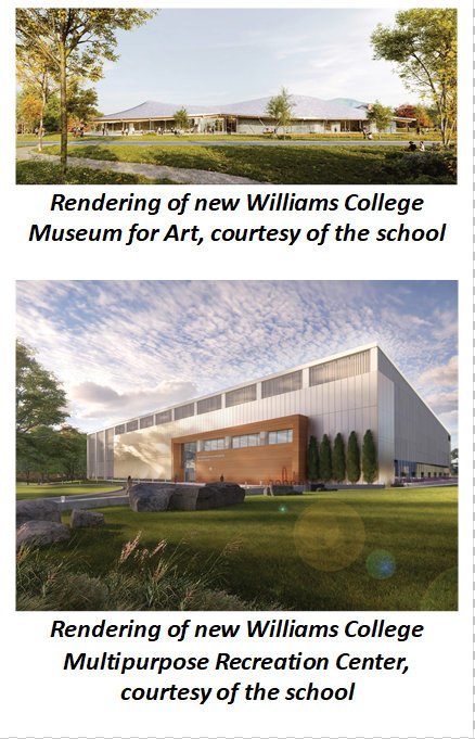 The new Williams College Museum of Art off Field Park is expected to cost $175 million with the college planning to raise $100 million through donations; another $25 million toward the project was gifted in April 2024 by an anonymous donor.