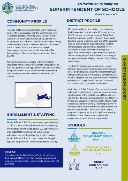 NORTH ADAMS, Mass. — The School Committee on Tuesday approved a superintendent search committee and a brochure advertisement for the post.