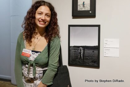 Wainwright exhibited a black and white photograph, titled "Bear," of a sheepdog she called Gus watching over his flock. The college show was juried by Chloe Zaug, associate director of the MassArt Art Museum, who selected 71 works by 58 artists representing 10 Massachusetts institutions from more than 230 submissions.