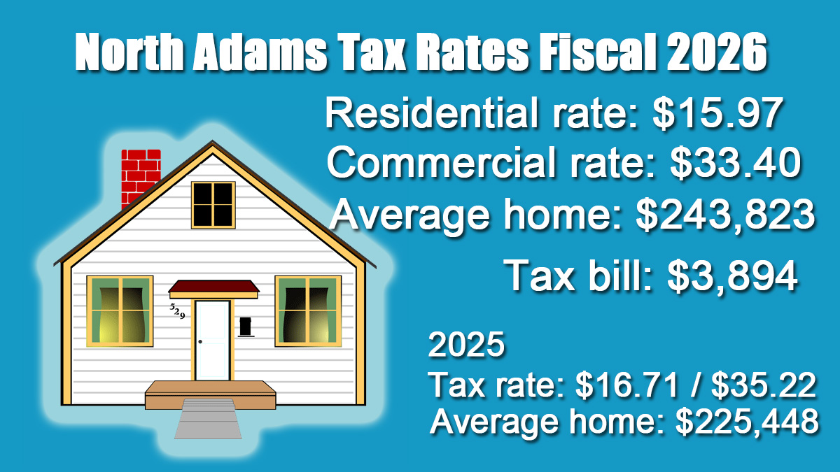 NORTH ADAMS, Mass. — Like many communities, homeowners in the city will see their tax rate drop but their tax bills rise as the values of their properties have increased.