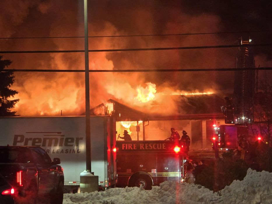 Images from the Pittsfield Fire Department show the building in flames that spread through the north side of the structure. Smoke could be seen billowing over Route 7.