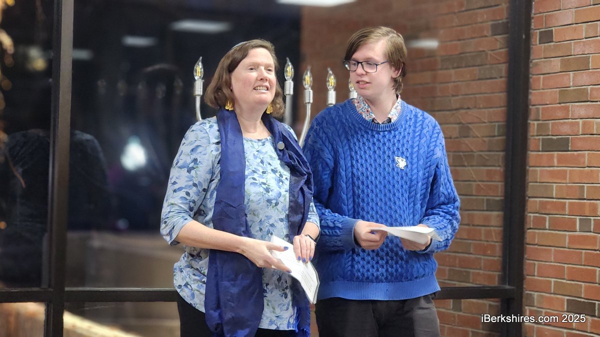 In North Adams, Rabbi Rachel Barenblat Drew Zuckerman of Congregation Beth Israel of the Berkshires explained the history of the holy days, with the help of her son, Drew Zuckerman.